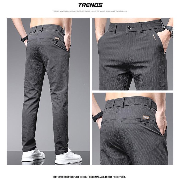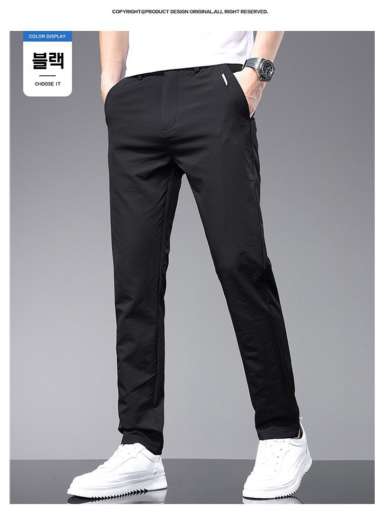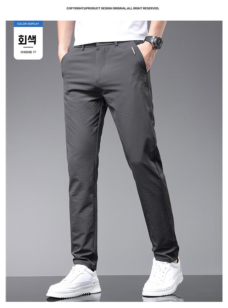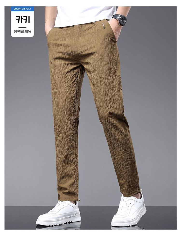 남자 여름 비즈니스 캐주얼 통기성 슬림 일자 긴바지 얇은 기포 팬츠 편안한 무감각 팬츠